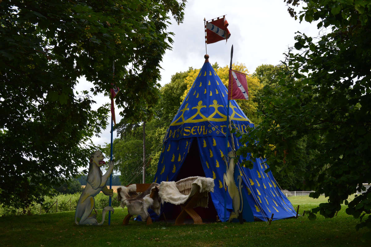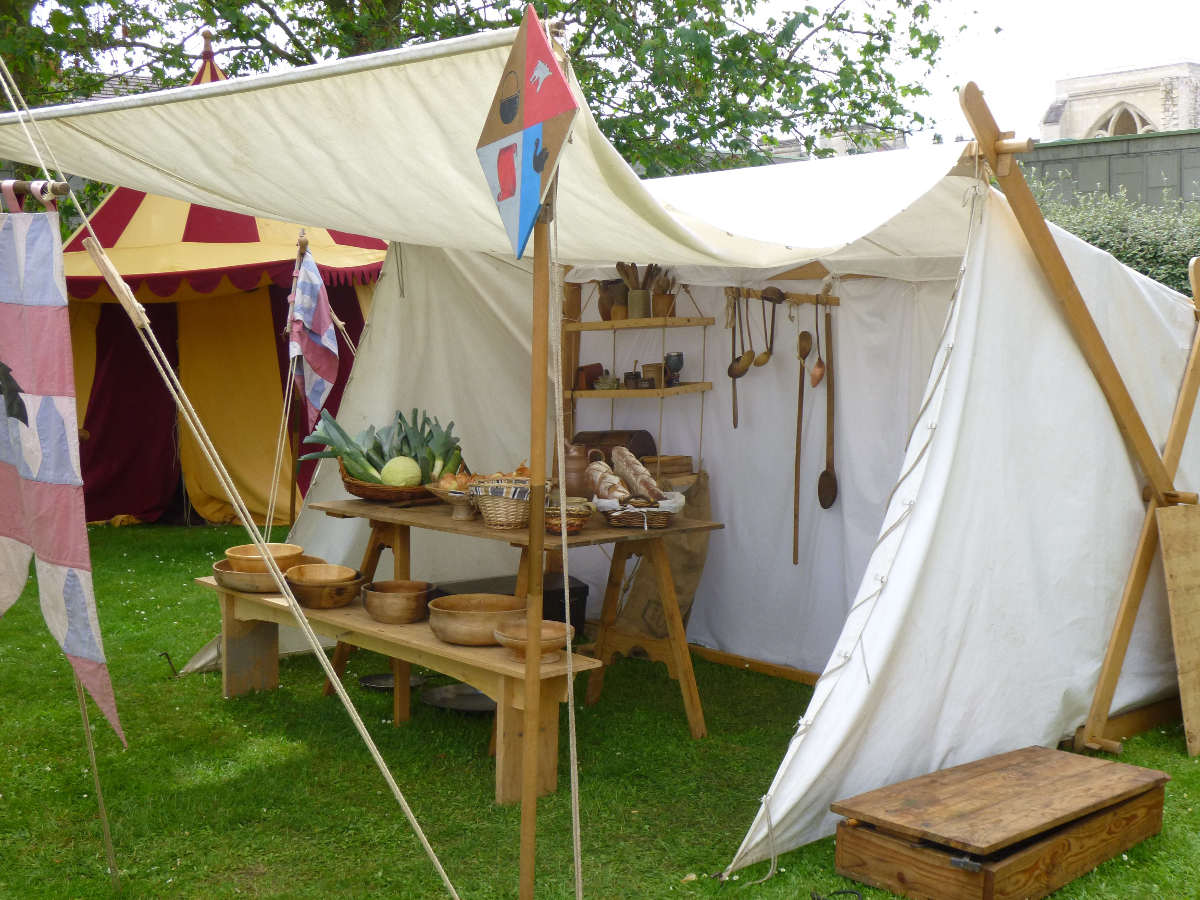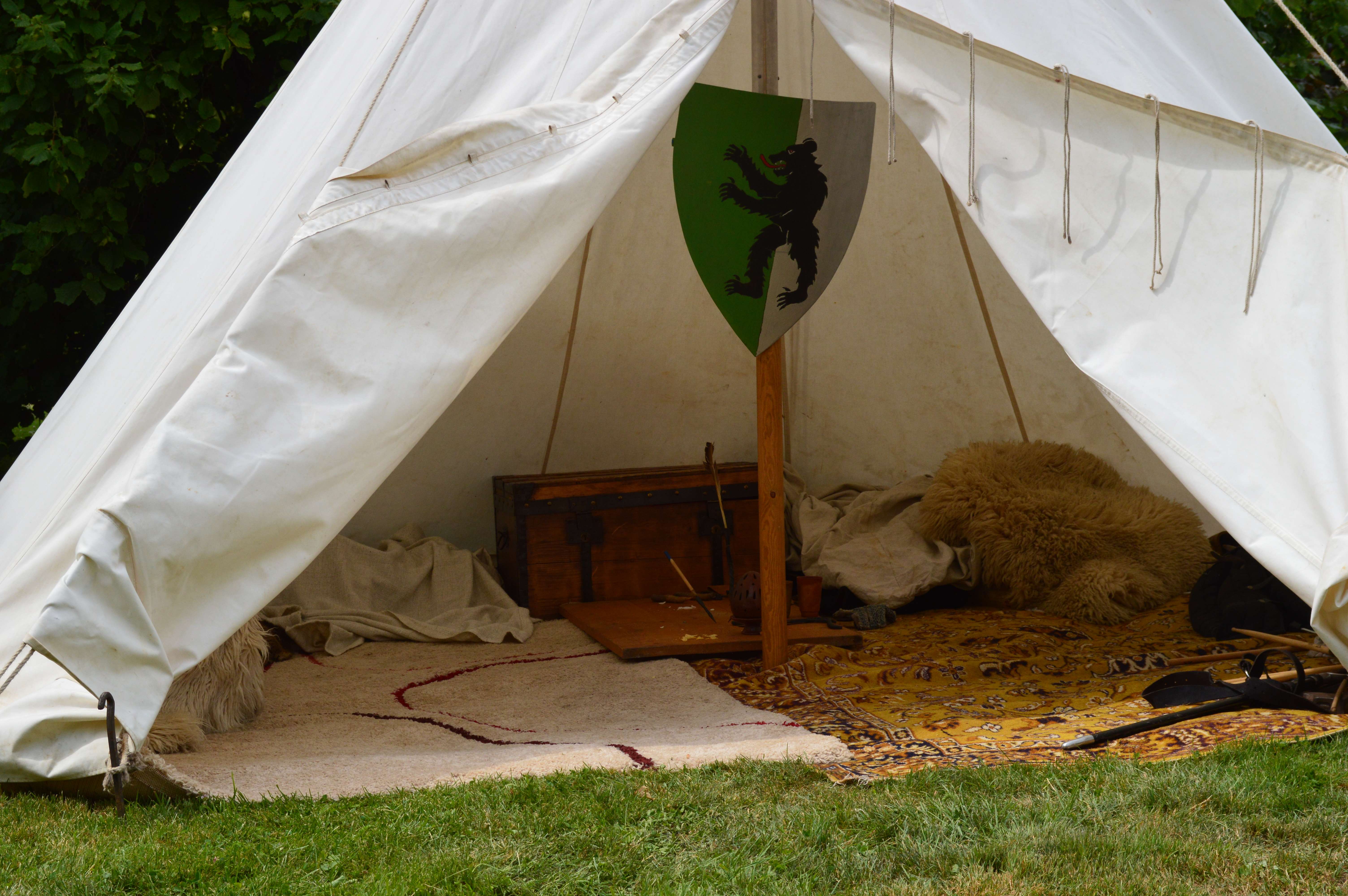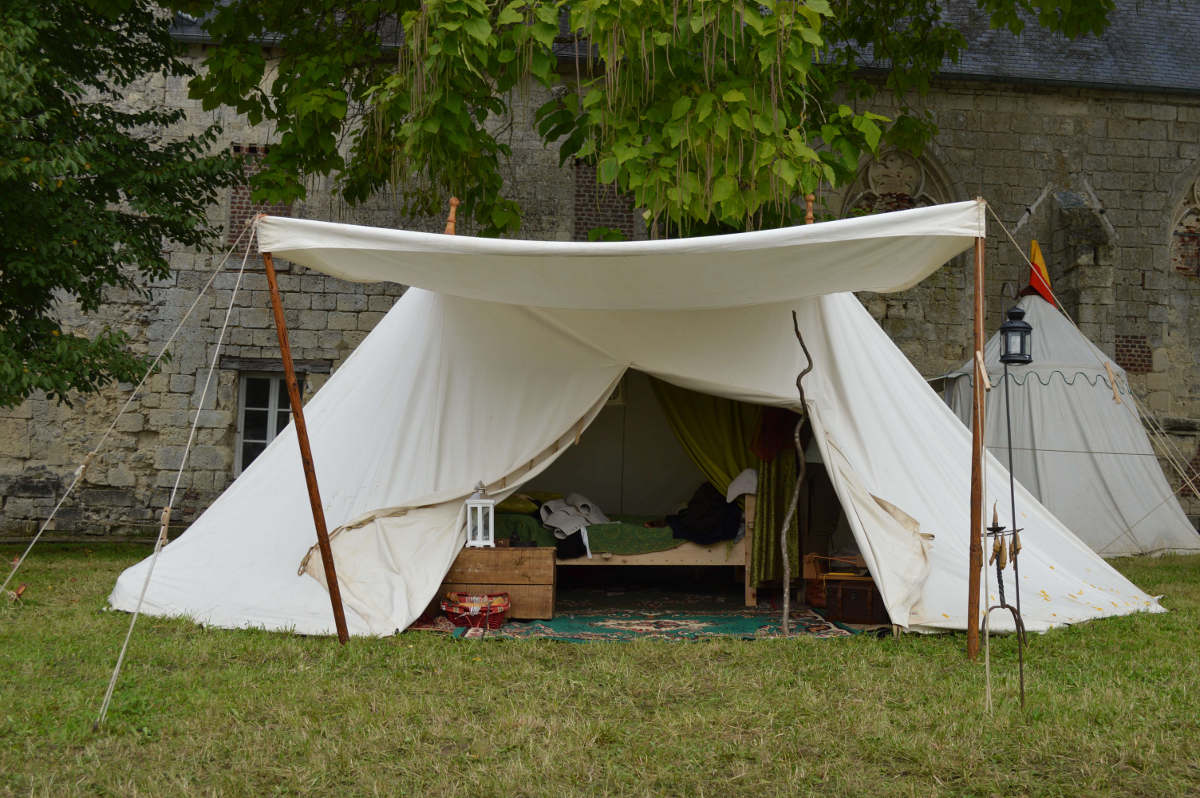 C'est dans cette tente que vivent Fabien de Laon et son épouse Bérangère, avec leur fille Clothilde. Le mobilier de cette tente est typiquement seconde moitié du XV° siècle.