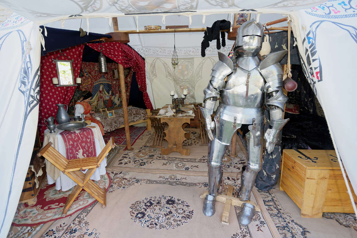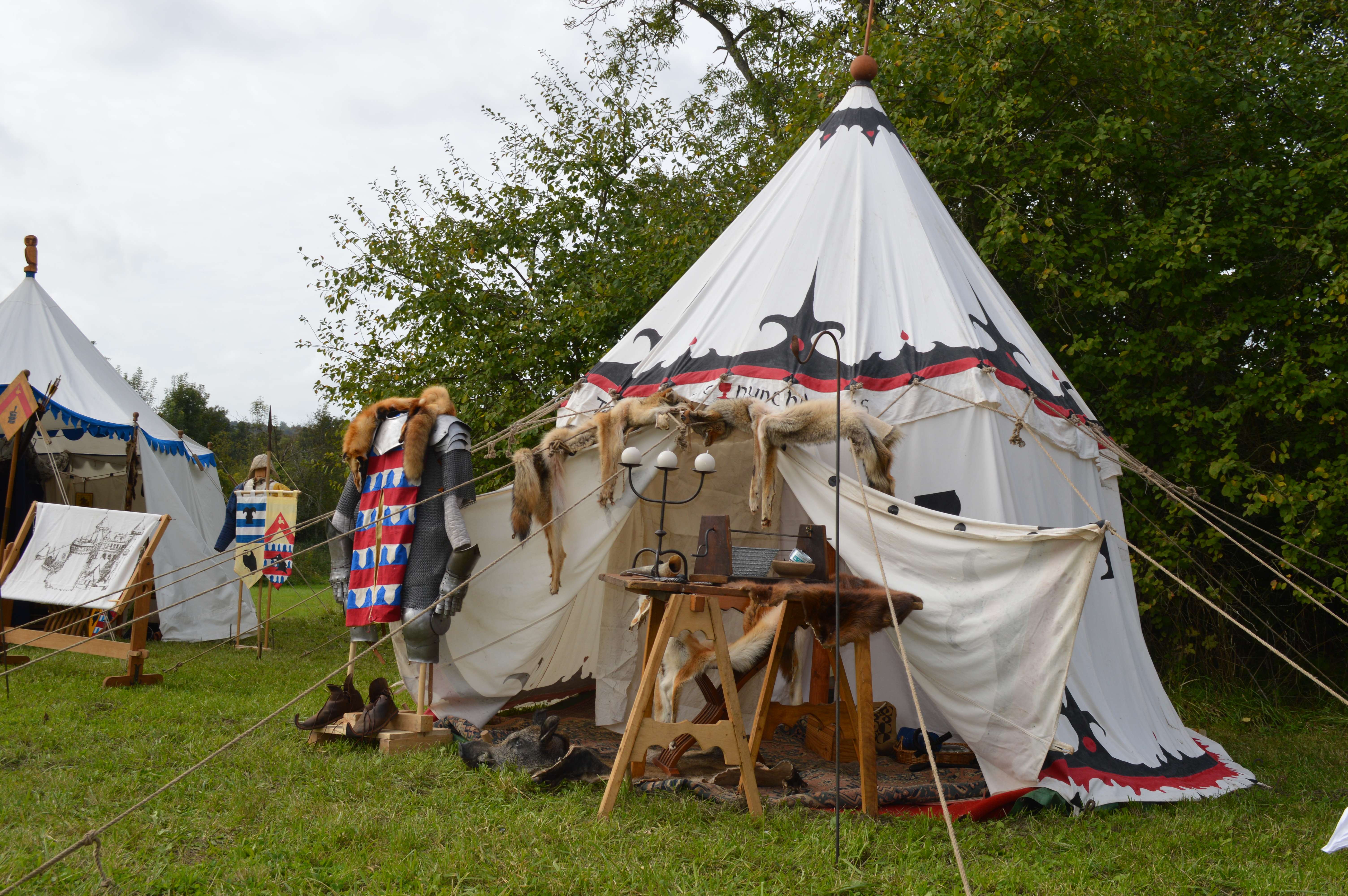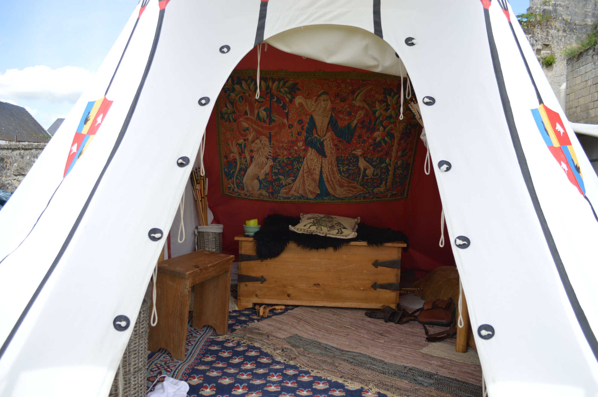 C'est dans cette tente que vivent Fabien de Laon et son épouse Bérangère, avec leur fille Clothilde. Le mobilier de cette tente est typiquement seconde moitié du XV° siècle.