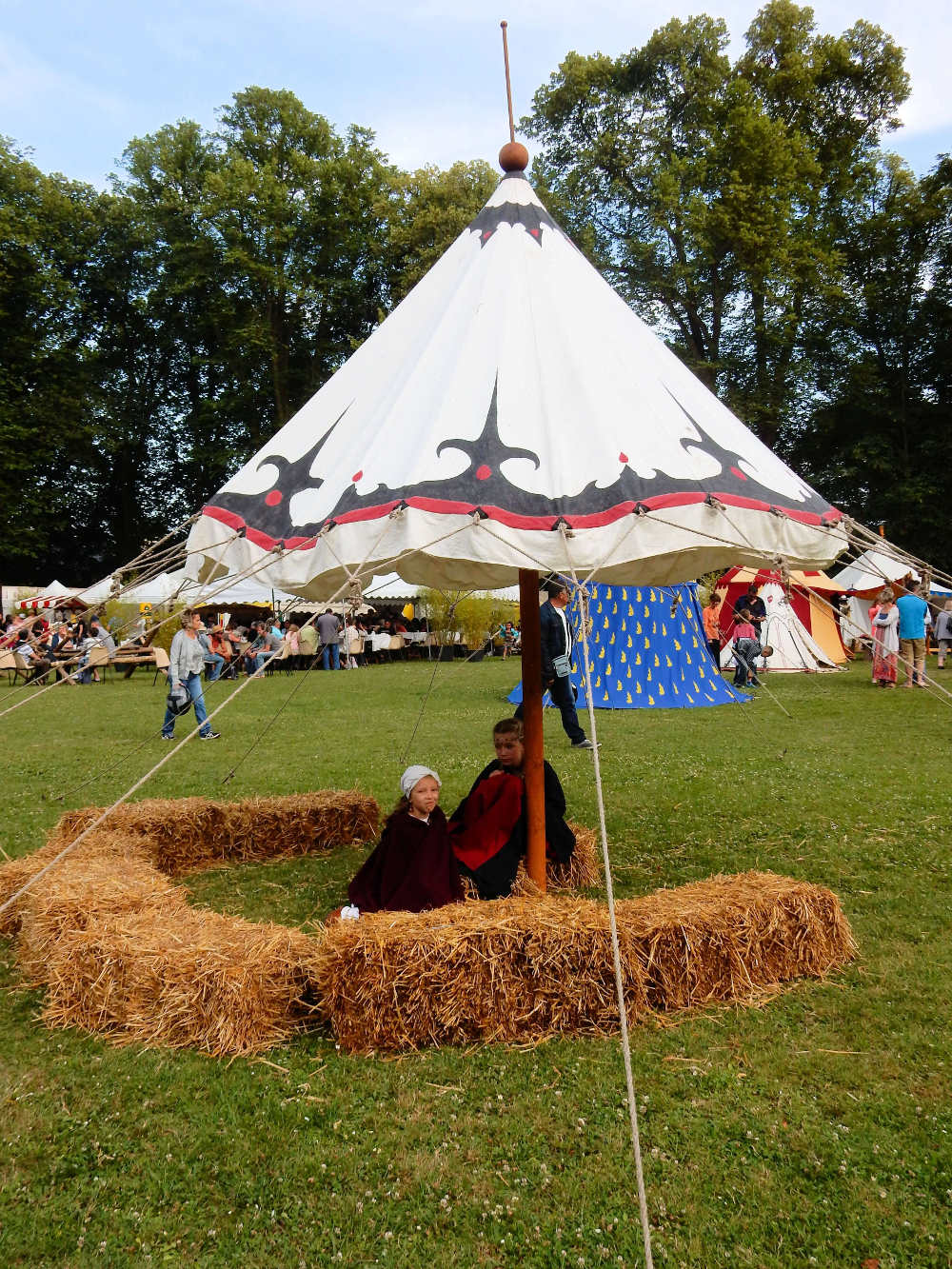 Voici la tente de Jeanne, fille de notre capitaine. Sa tente est d'ailleurs peinte avec les mêmes motifs que celle de Germain de Villeneuve!
