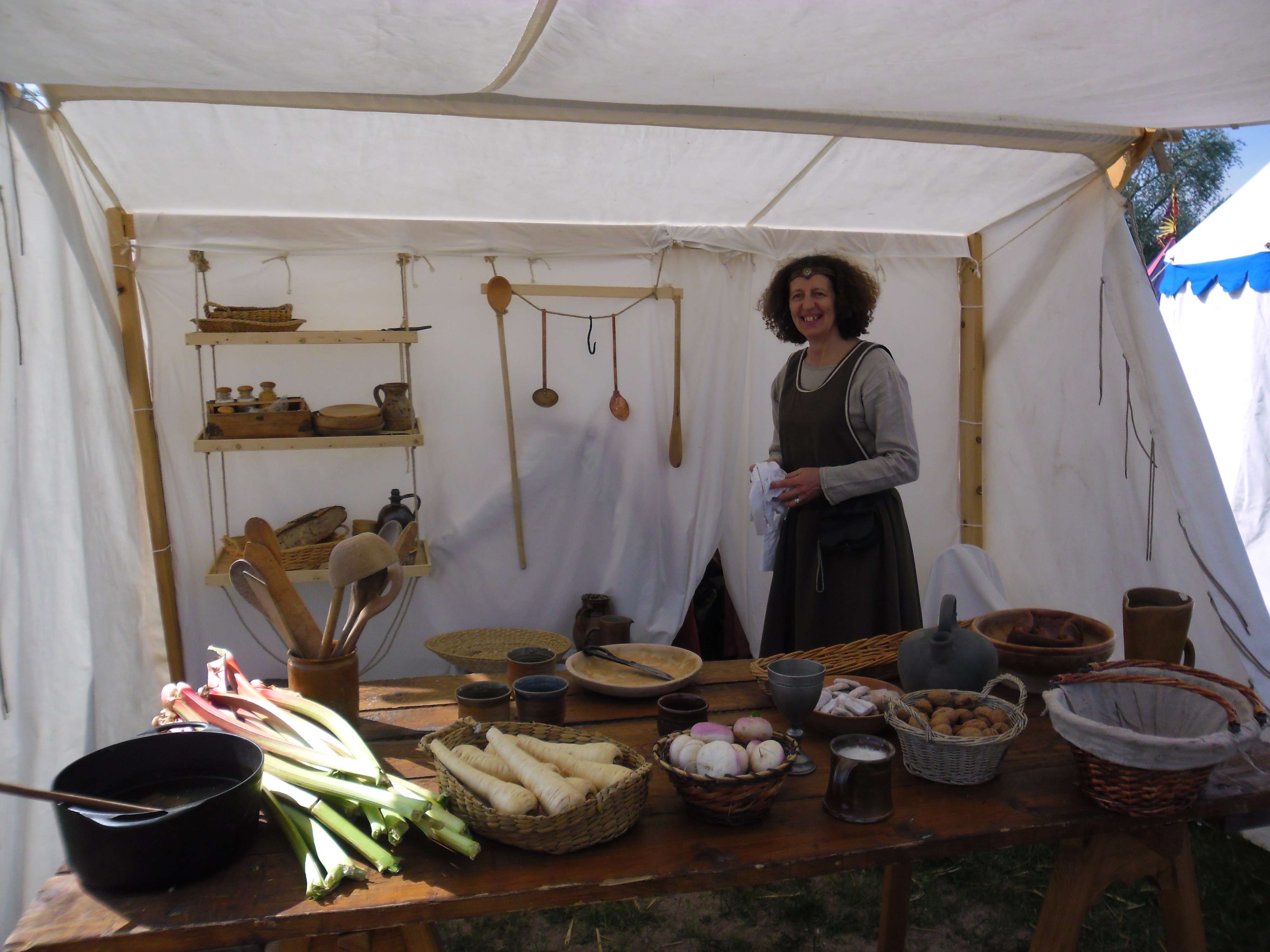 Cette tente peut avoir plusieurs fonctions: Tente étuve , tente expositions (sur l'hygiène au moyen-âge, l'évolution des costumes...), couchage...