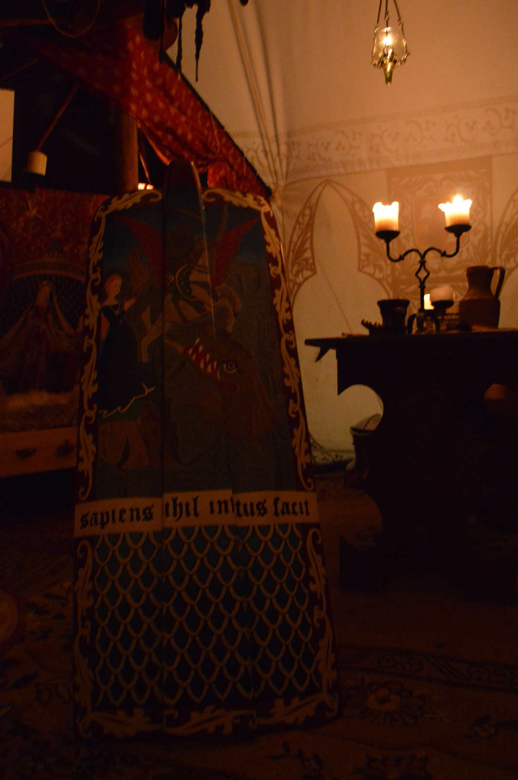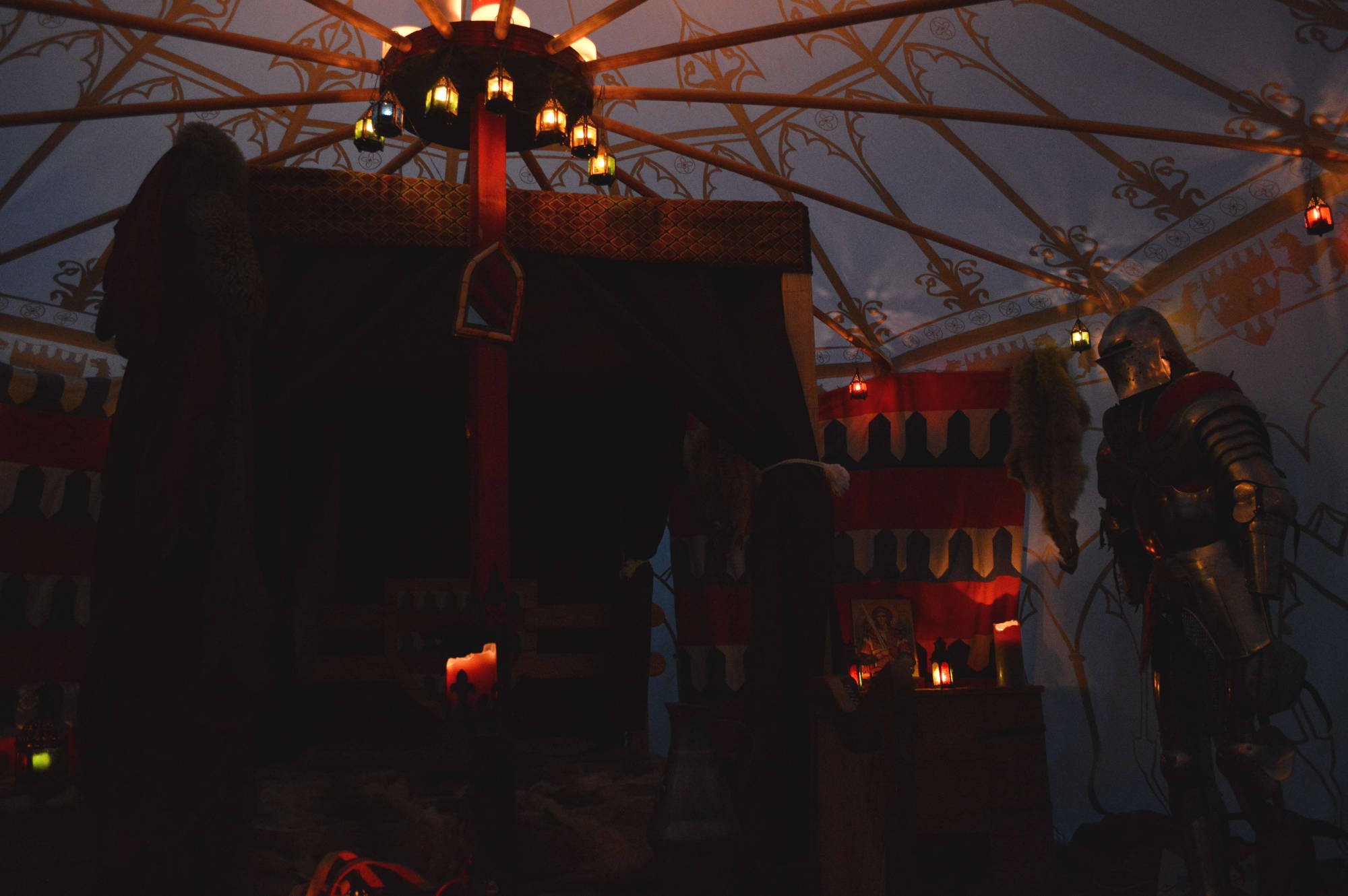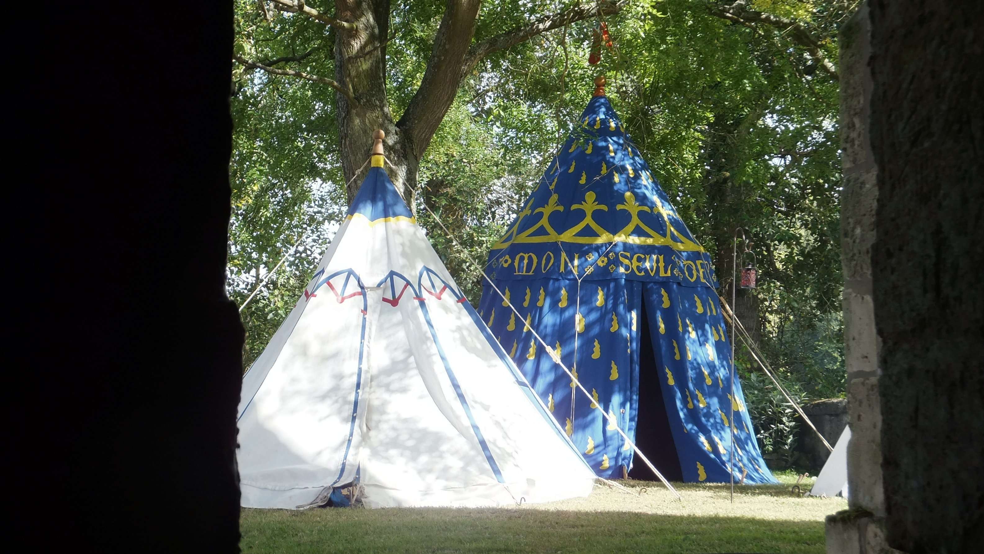 Voici la tente de Jeanne, fille de notre capitaine. Sa tente est d'ailleurs peinte avec les mêmes motifs que celle de Germain de Villeneuve!