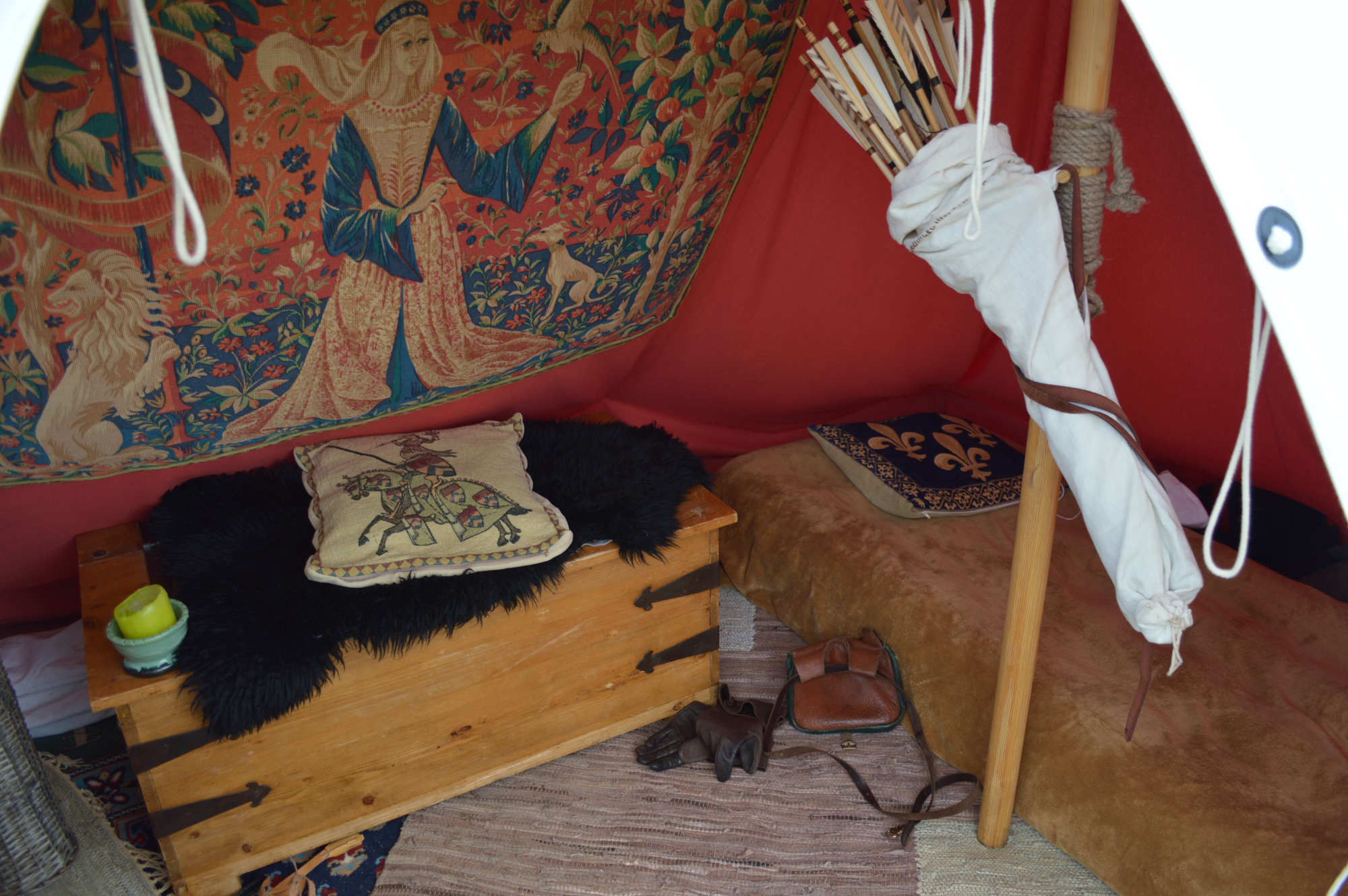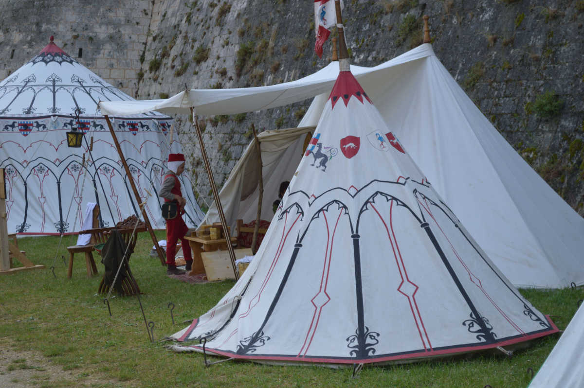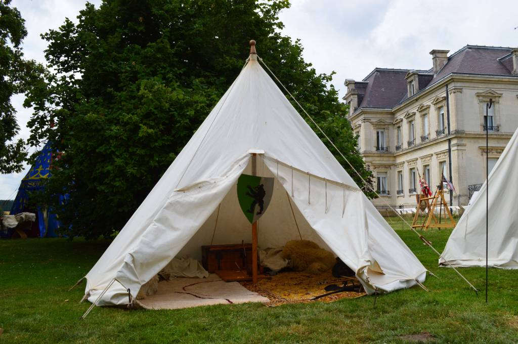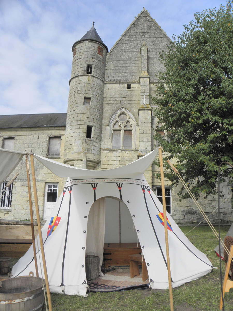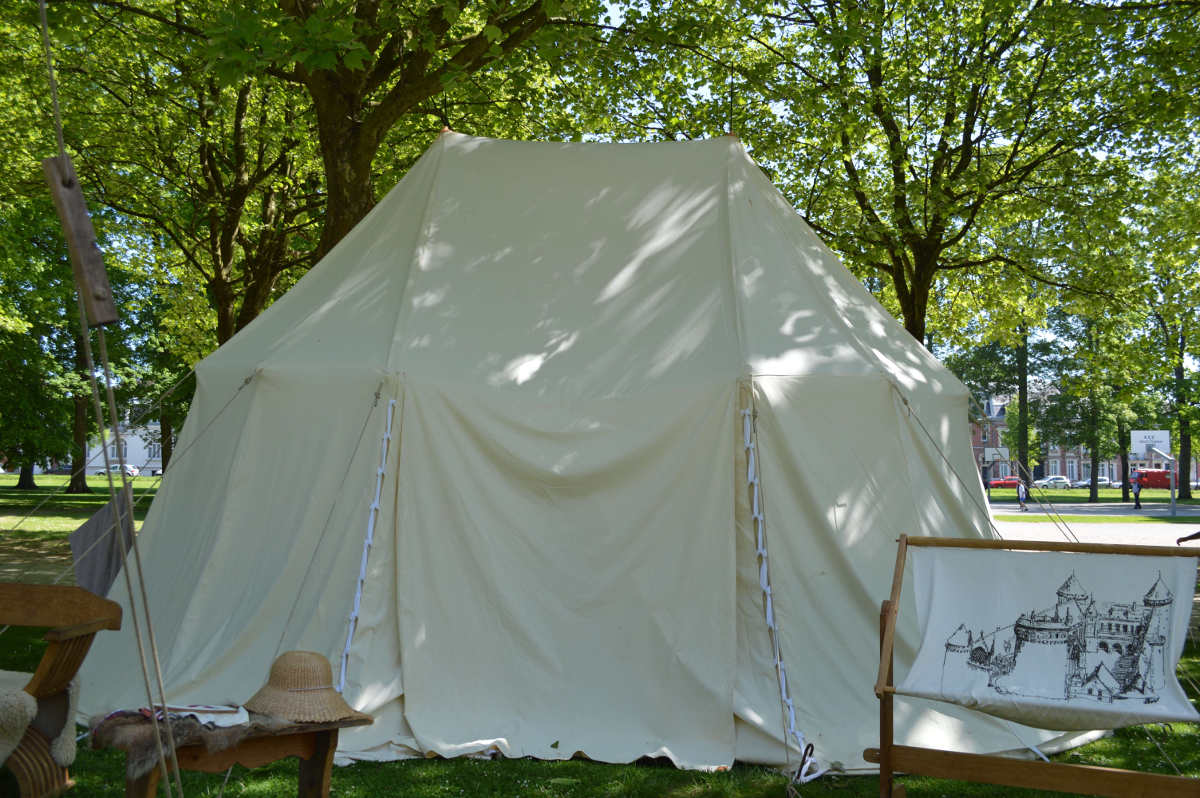 C'est dans cette tente que vivent Fabien de Laon et son épouse Bérangère, avec leur fille Clothilde. Le mobilier de cette tente est typiquement seconde moitié du XV° siècle.