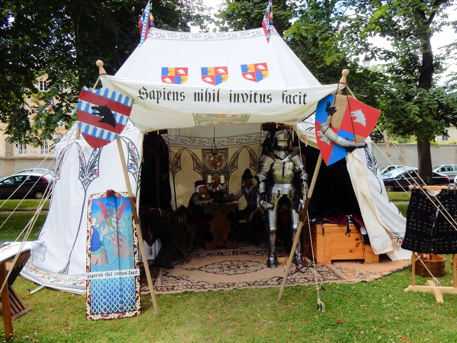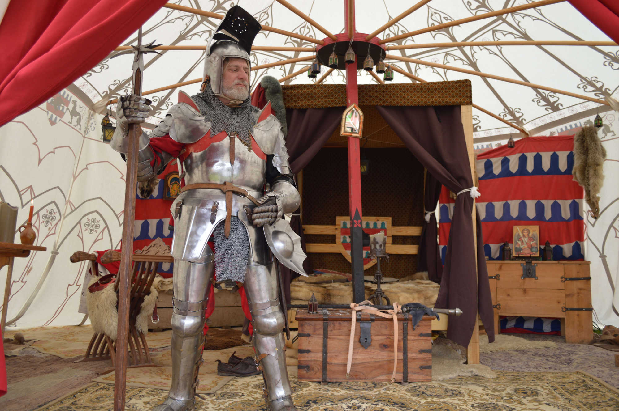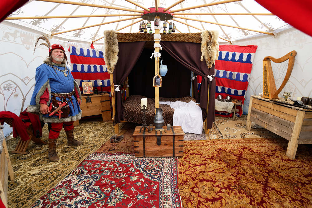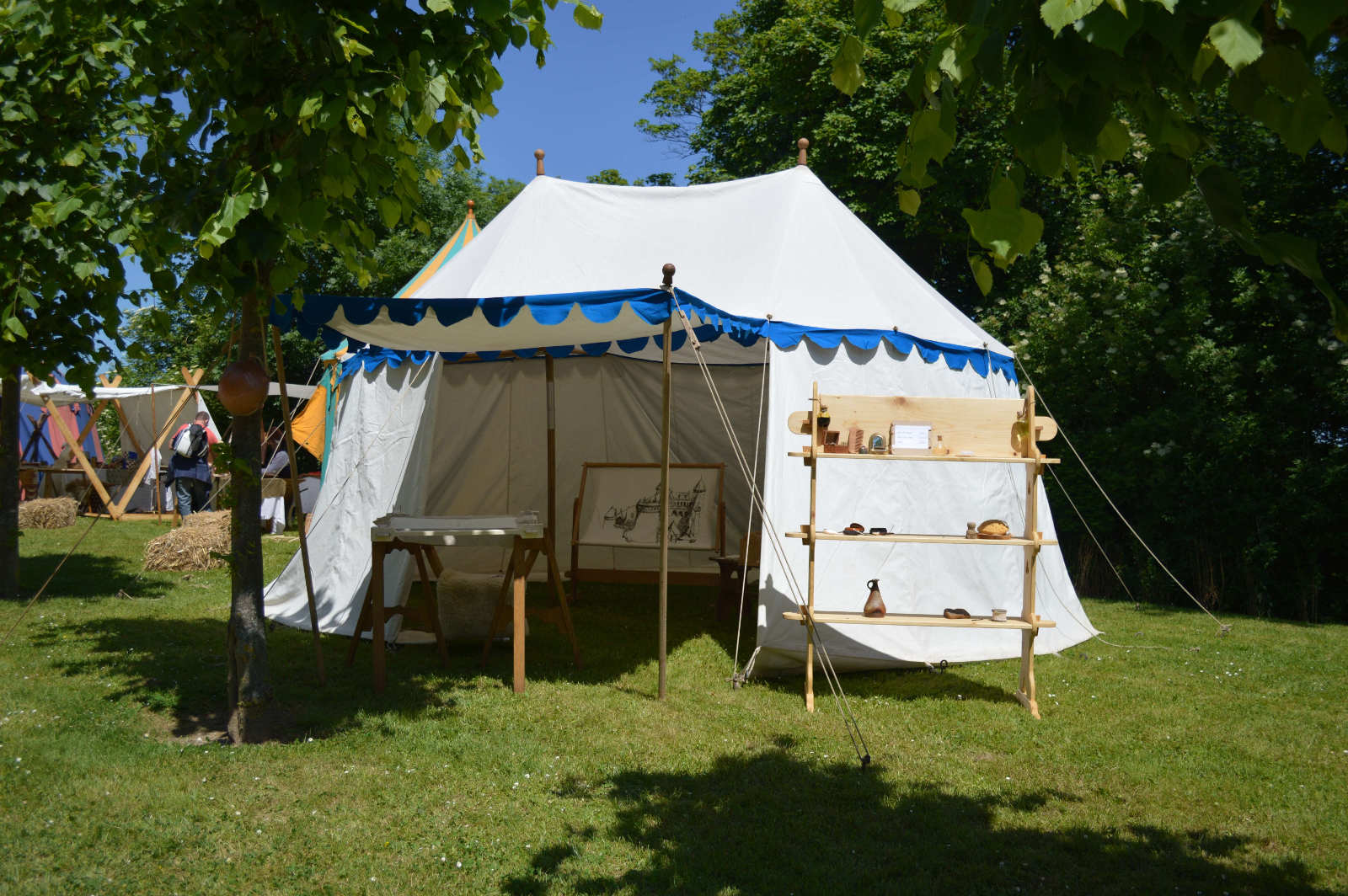 C'est dans cette tente que vivent Fabien de Laon et son épouse Bérangère, avec leur fille Clothilde. Le mobilier de cette tente est typiquement seconde moitié du XV° siècle.
