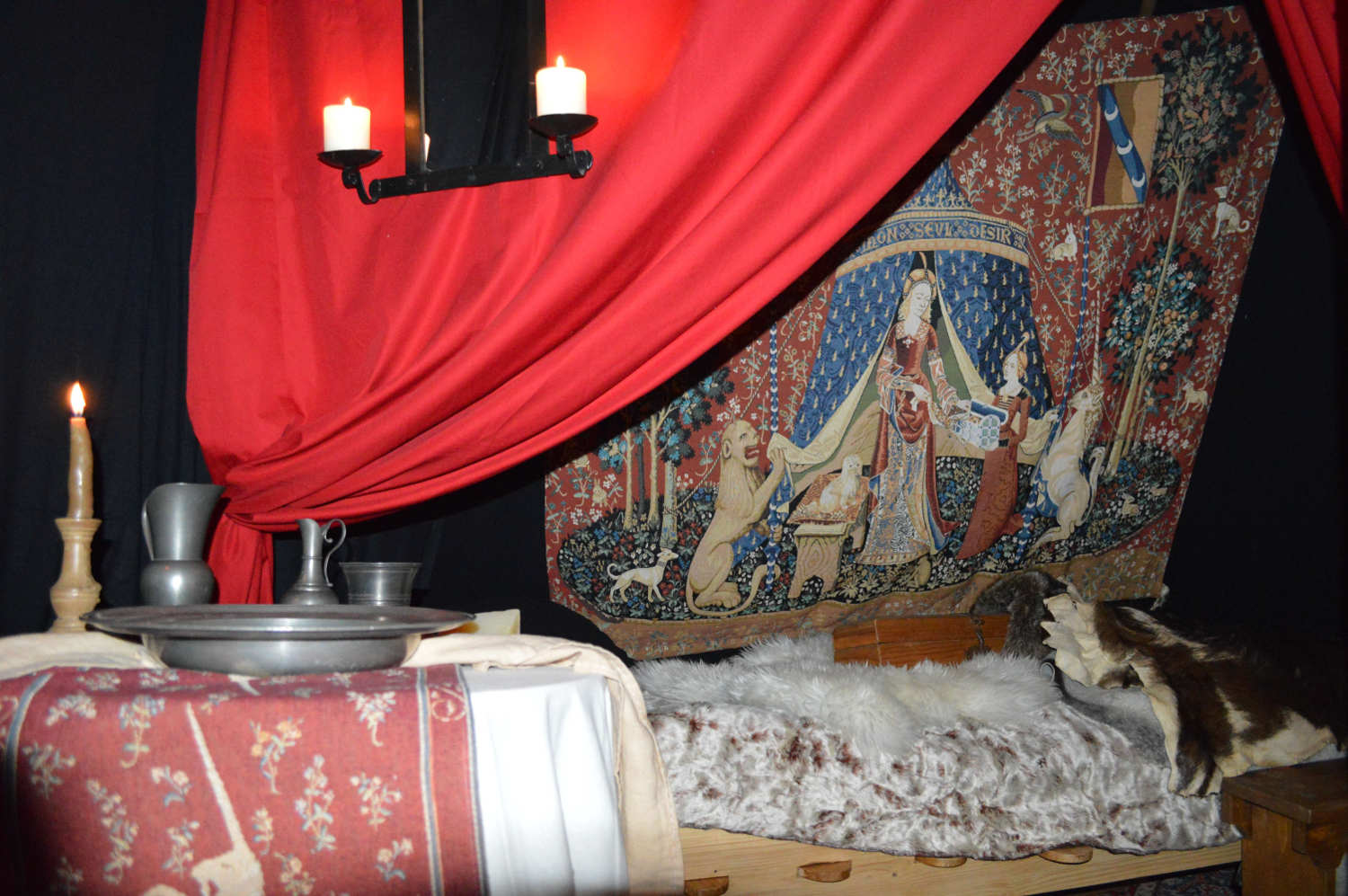 Cette fois, c'est la reconstitution d'une tente célébre: celle que l'on trouve sur les tapisseries de la dame à la Licorne (visibles au musée de Cluny à Paris).